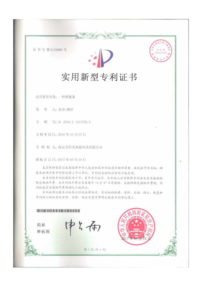 實(shí)用新型專(zhuān)利——一種鎖緊條